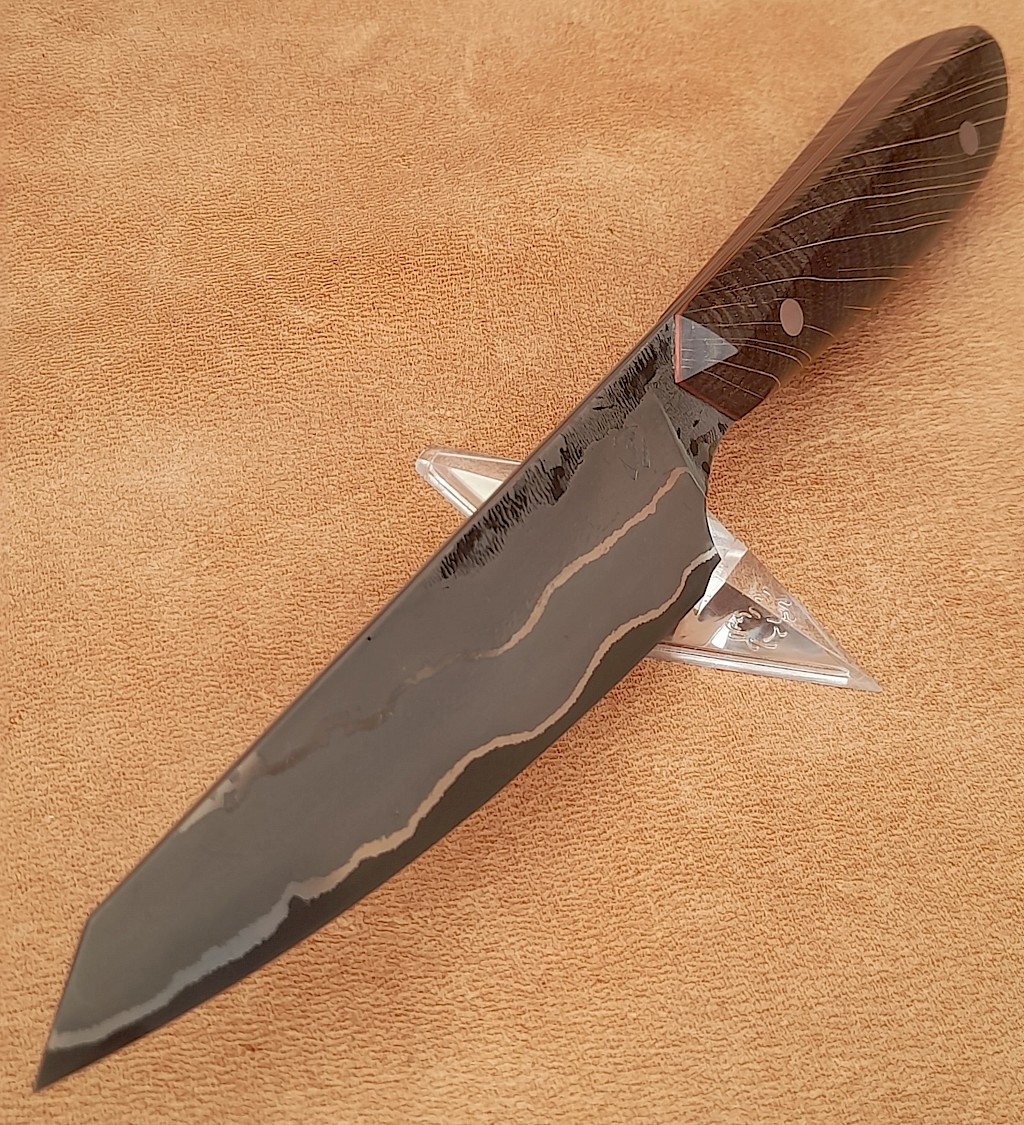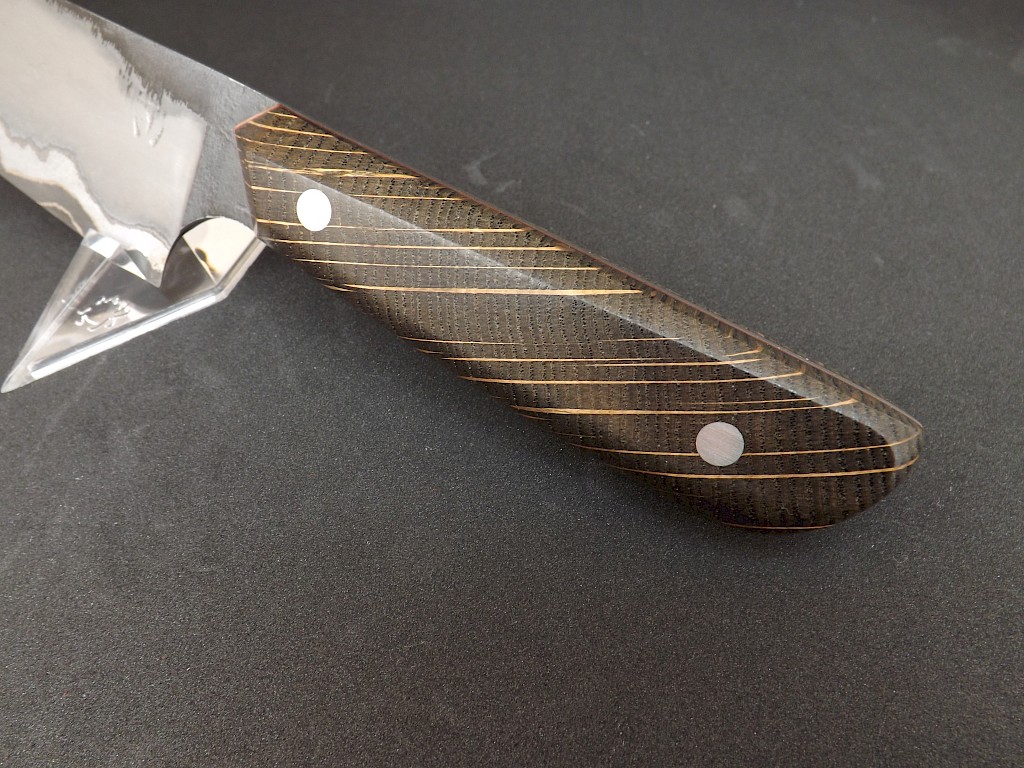 This new series of chef's knives are called the Oyabun, which is the name given to a Yakuza boss and these will certainly be the boss of any task you perform in the kitchen. They will be a standard style and size and will come with the same shaped handles. The core blade steel will be 26C3, which is a very pure high carbon tool steel which is capable of taking and holding a very fine and sharp edge. The outer cheeks are made from mild steel… View More